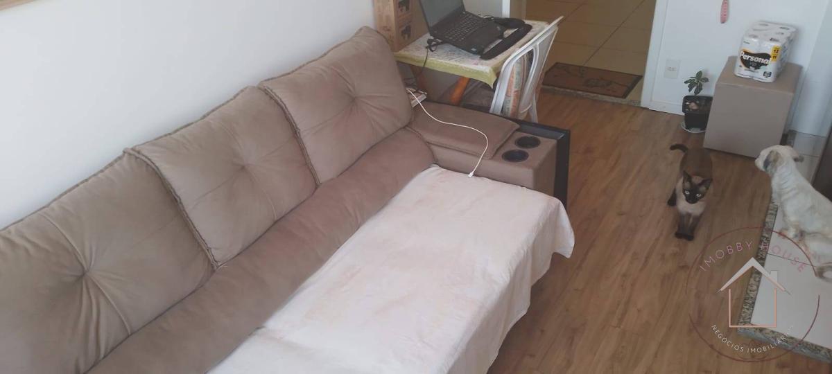 2 dormitórios, sala, cozinha, banheiro, sem vaga de garagem. Piso vinilico na sala e nos dois quartos, cozinha com armários e banheiro com box. Redes de proteção nas janelas.