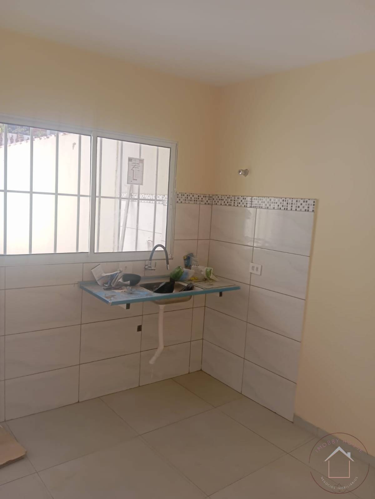 São dois dormitórios, sala ampla super iluminada, cozinha ventilada, piso de cerâmica, paredes claras, lavabo, um banheiro, área de serviço, quintal, aproximadamente vinte metros de terreno livre, podendo construir outra casa nos fundos, vaga para dois veículos e motos.